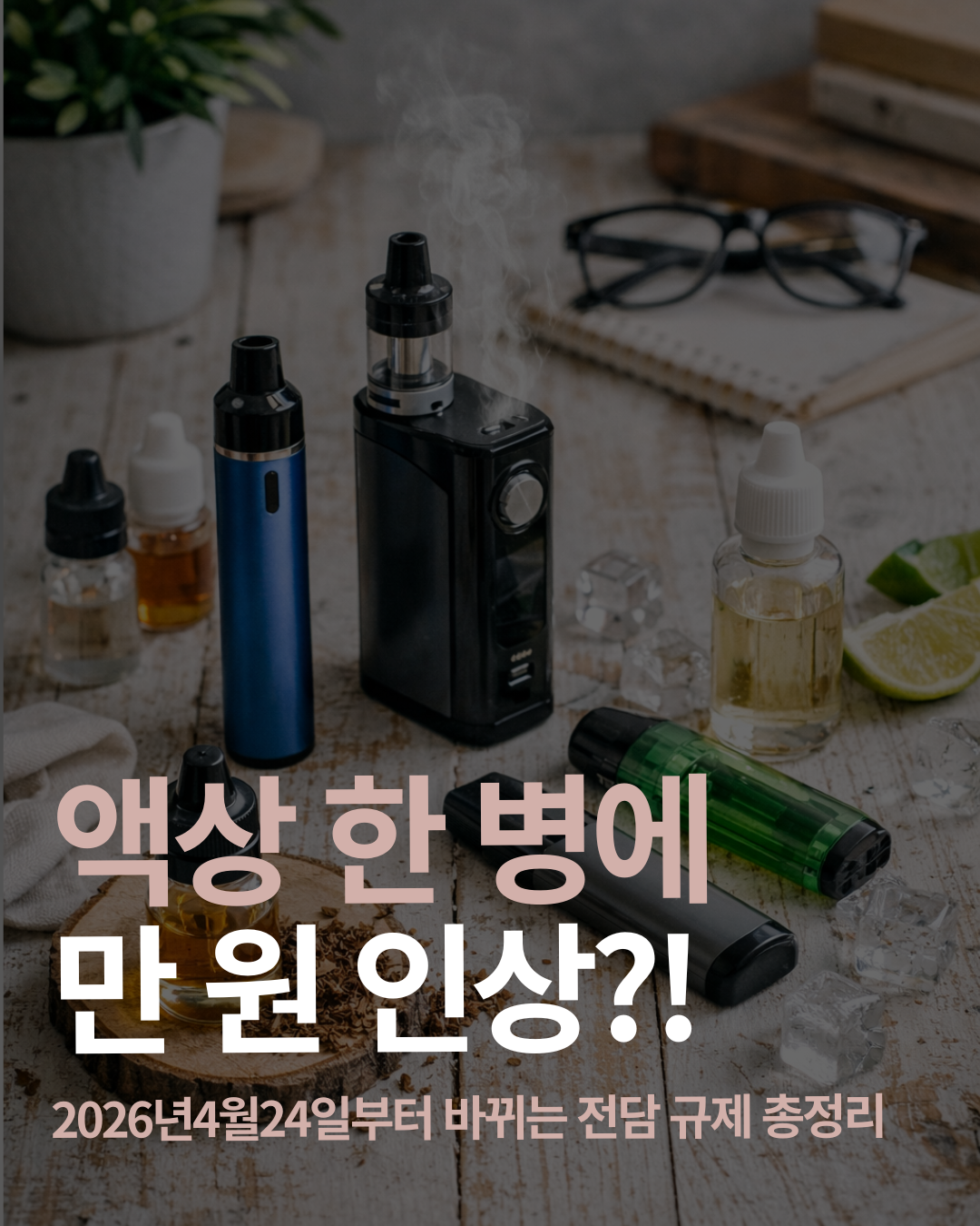 2026년 4월 24일부터 시행되는 액상형 전자담배 규제 강화! 합성니코틴 담배 편입, 가격 인상, 처벌 수위 및 판매점 유예기간까지 한눈에 확인하세요.
